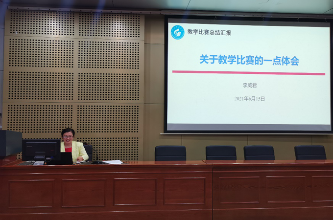 随后,获得今年山东省高校青年教师教学比赛二等奖的李威君老师分享了参赛经验和体会。她从不同层次介绍了教学比赛的流程与要求,分析了个人经验与教训,结合以德树人的理念、学生中心的思想和有效的教学方法,体现了李老师爱岗敬业、因材施教的师德情操。