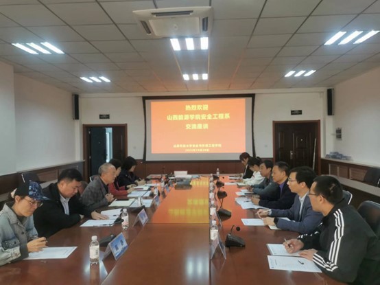 会上,刘音首先介绍了安全学院的发展历程、制度建设、思政建设、课程改革与创新、基层教学组织等方面。随后,郭辉介绍了山西能源学院安全工程系的发展历程以及师资情况,并对我院教育教学方面取得的成果表示赞赏。张恩生提到两个高校的前身都与煤炭息息相关,但是又各有特色,定位不同,两个学院以后要进一步加强交流学习,相互借鉴、相互学习、共同提高、共促发展。会后,山西能源学院的客人在陈静老师的带领下参观了我院实验中心。