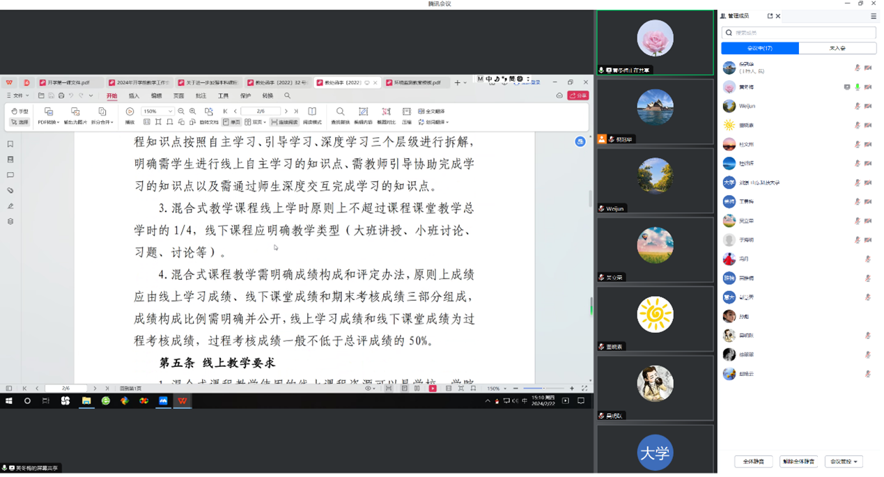 点击:2月22日、23日,安全学院在院、系两个层面开展了开学前的教学工作会议。学院教学工作会议由教学副院长刘音主持,各系主任、教学主任、实验中心负责老师以及教科办老师参加了本次会议。会上总结了2024年新年伊始学院教学工作取得的成绩,梳理了新学期的教学工作重点,主要包括新学期的教学准备、毕业生的实习工作、培养方案的修订、实习基地的建设、教材建设、虚拟教研室建设、招生宣传、试验示范中心建设、教学资料的收集整理等工作。安全工程系、职业卫生工程系和环境工程系贯彻本次会议精神,在之后陆续开展了各系的开学前教学工作会议,部署了开学前的各项准备工作,组织课程组和教师开展开学前集体备课活动,认真学习教学文件,讨论本学期教学内容安排、课程考核要求及方式等工作,督促教师做好上课准备,以饱满的精神迎接新学期的教学工作。