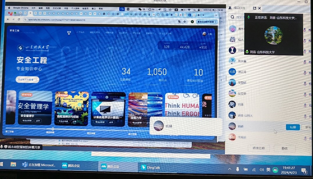 点击:安全学院于4月23日19:00-20:00举办安全工程专业知识创新中心建设成果汇报会,参会人员有智慧树辛虎山、韩永明、廖伟平、张媛媛老师,以及安全工程专业课程知识图谱的建课老师。会议由教学副院长刘音主持。