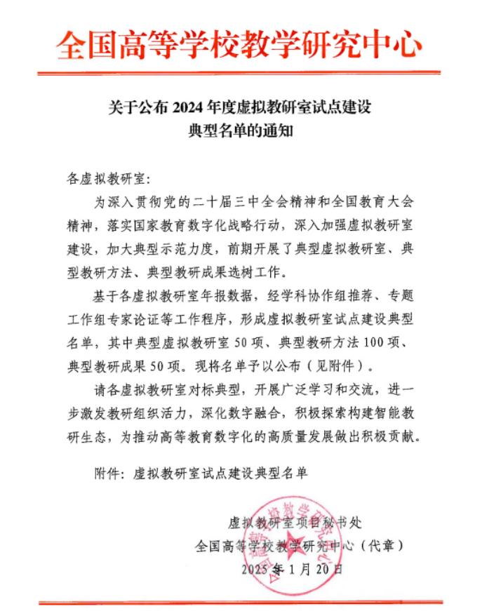 虚拟教研室将借助此次表彰,进一步对标典型教研方法,深入开展广泛学习和交流,激发安全工程虚拟教研室基层教研组织活力,深化数字融合,积极探索构建智能教研生态,为推动高等教育数字化的高质量发展做出积极贡献。
