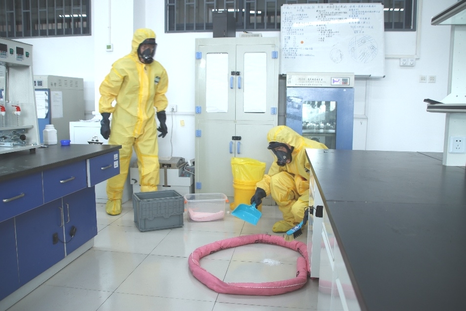 点击:为增强学院师生的实验室安全责任意识,提升突发事故应急响应与处置能力,2025年7月8日下午,安全学院实验教学示范中心以“浓硫酸玻璃容器破裂致学生眼部和身体灼伤”为主题,组织开展了有关实验室危化品泄露的应急演练。学校实验室与设备管理处副处长王鹏、综合管理科杨佳琪、安全学院党委书记张恩生、副院长刘音、实验中心负责人陈静,以及实验室相关师生共同参加并观摩了应急演练。