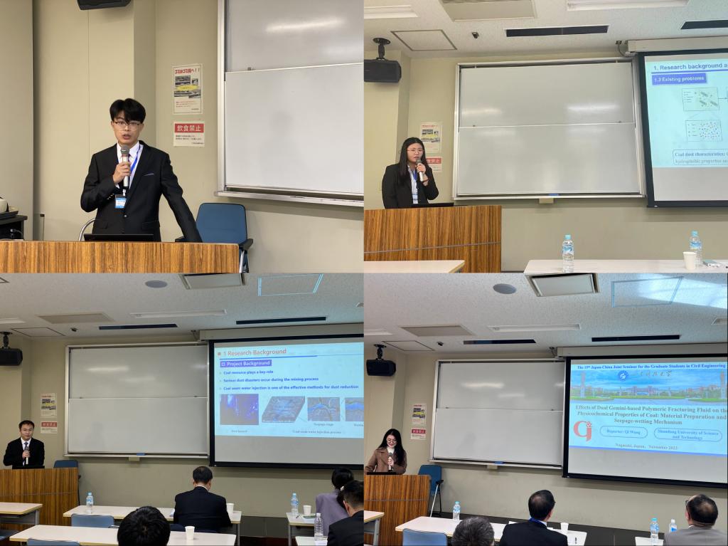 点击:11月24日至27日,学校科技处副处长孙开师、安全学院副院长聂文、矿山灾害预防控制实验室副研究员张学朋带领学校14位博士、硕士研究生赴日本长崎大学参加“第五届中日土木工程研究生研讨会(The 5th Japan-China Joint Seminar for the Graduate Students in Civil Engineering)”,本次研讨会由山东科技大学、日本长崎大学和同济大学联合主办,会议主题涉及土木、安全、环境等多个领域。其中我院牛文进、刘金迪、解树亮、王琪、董浩、程煜、李秋月7名同学参会并分别作学术报告,牛文进、刘金迪、解树亮、董浩4名博士研究生担任会议报告主持人。