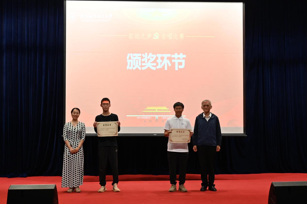 参赛班级进行演唱赛程告一段落后,学院飞天合唱团作为此次比赛的特邀嘉宾,为大家带来了合唱《大鱼》和笛子独奏《红蜻蜓》。这不仅仅是音乐的展演,更是一场跨越时空的情感交流,所有观众为之沉醉与感动。在登台的合唱团成员中,多数都担任了本次比赛的指导老师,负责班级曲目的指导和编排。他们用自己的热爱和努力帮助每一个班级“从零起步”,让更多同学了解合唱,爱上合唱。
