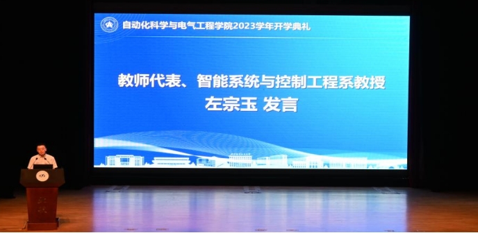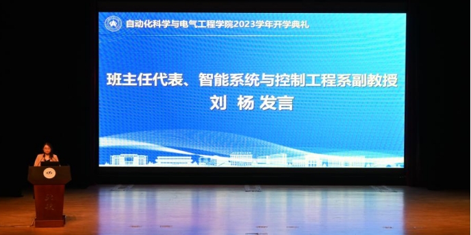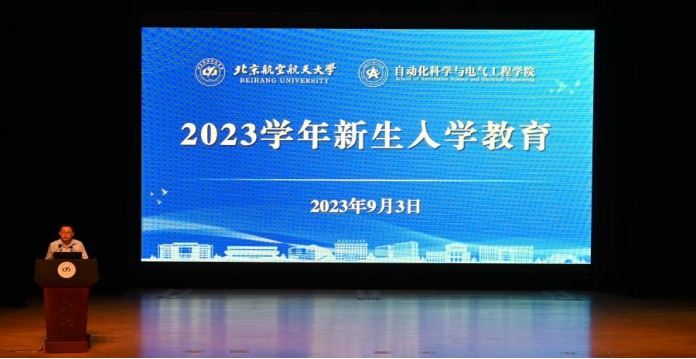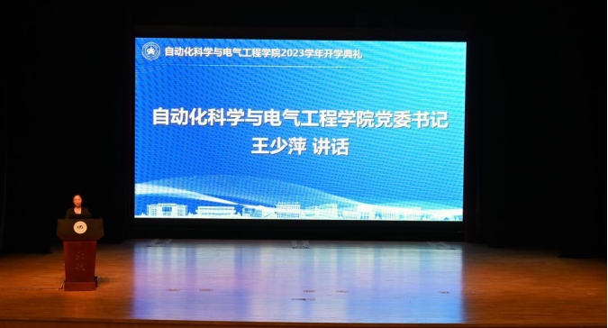 9月3日上午,自动化科学与电气工程学院2023学年开学典礼暨新生开学第一课于学院路校区晨兴音乐厅圆满落幕。院党委书记王少萍,院长吕金虎,党委副书记贾子超,副院长李阳、郑征、王薇,院长助理王兴坚、丁晓峰,学院教师、班主任、辅导员代表,本研教学秘书及全体本研新生参与本次典礼。开学典礼由学院党委副书记贾子超主持。