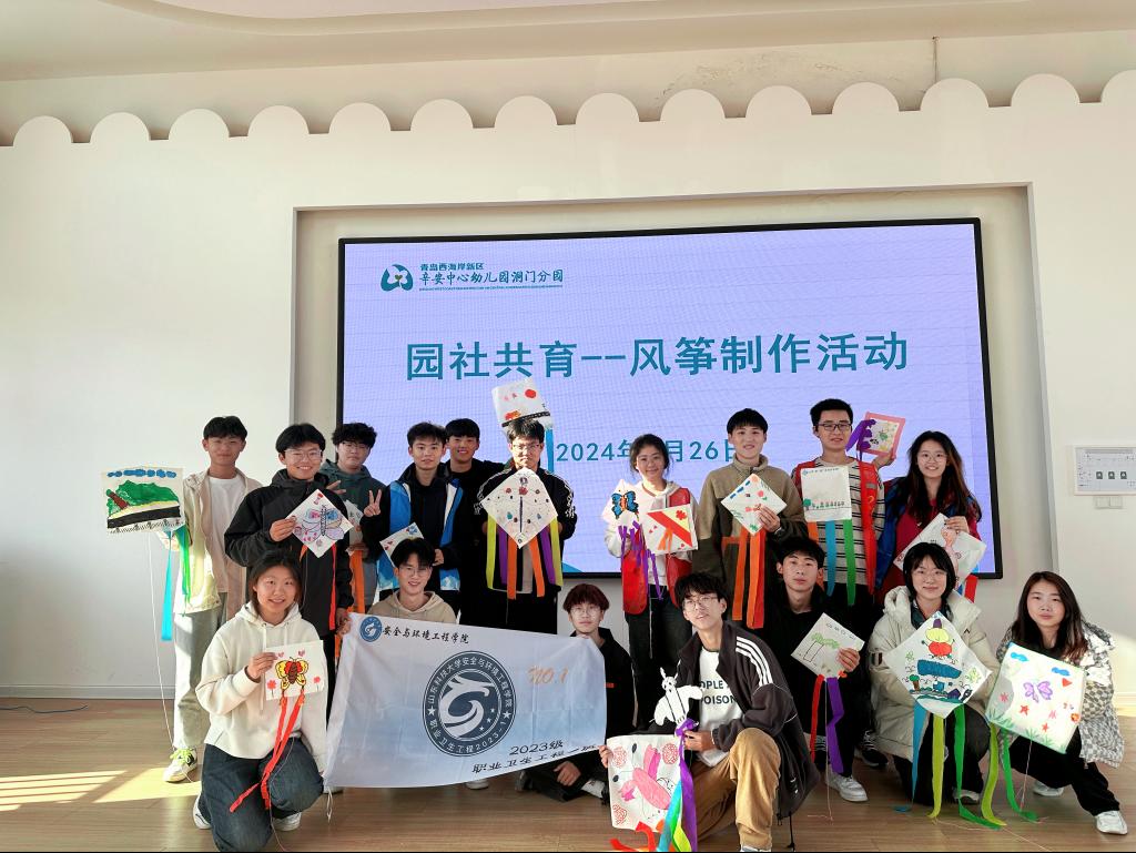 2024-03-29为进一步学习贯彻党的二十大精神和习近平总书记对深入开展学雷锋活动的重要指示精神,引导青年学生投身志愿服务事业,3月26日,职业卫生工程2023-1班走进渭河西路社区洞门幼儿园参加志愿服务活动。此次活动,班级17名志愿者来到洞门幼儿园与大班小朋友一起开展风筝制作活动。活动过程中,志愿者们与小朋友一起创作各式各样的风筝并在操场放飞,欢笑在整个操场上空萦绕。本次志愿服务活动的开展,不仅锻炼了小朋友们的创造性思维...