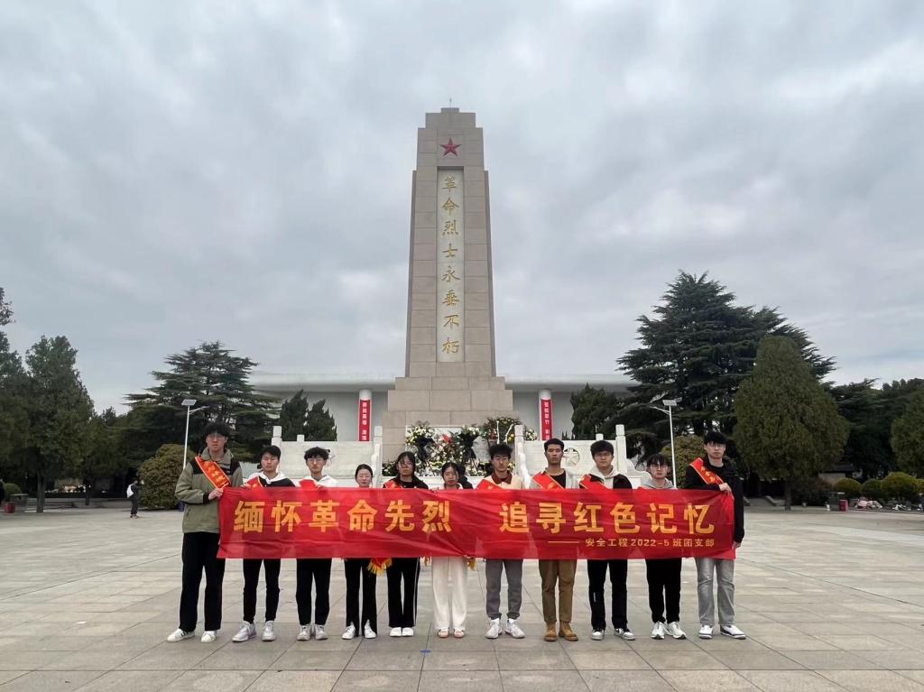青山绿水长留生前浩气,苍松翠柏堪慰逝后英灵。时届清明,为深切缅怀革命先烈,弘扬革命精神,让红色基因革命薪火代代相传,4月4日,安全工程2022-5班团支部组织前往黄岛区烈士陵园开展“缅怀革命先烈,追寻红色记忆”清明祭英烈活动团支部成员进入庄严肃穆的陵园,在工作人员的引导下,向烈士墓敬献鲜花,瞻仰烈士墓,并绕墓一周,整齐列队,面向烈士纪念碑,肃立默哀,向英烈们表达了最崇高的敬意。陵园中的纪念碑上刻着“革...