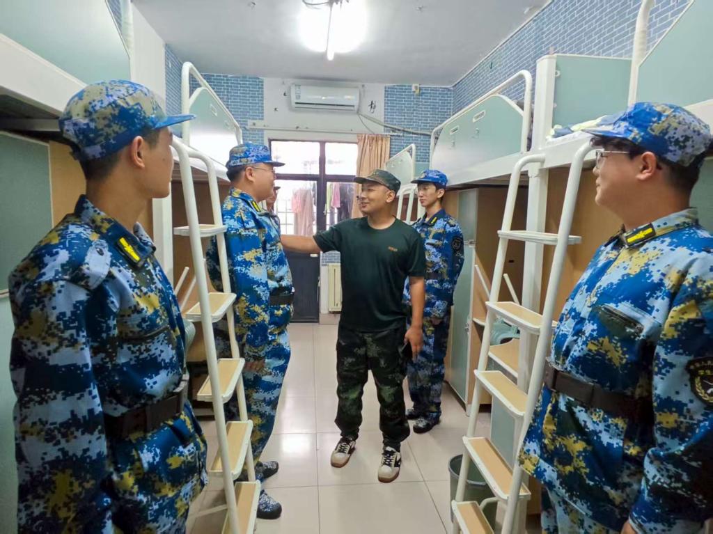 2025-09-10为锤炼新生严谨细致的作风,从生活点滴中培养自律与规范的意识,军训教官及2025级本科生辅导员刘雨池带领安全学院全体本科新生在学生公寓开展内务整理活动。训练场上雷厉风行的教官,在宿舍里化身细节控。他们亲自示范,耐心教导同学们如何将被子叠成标准的“豆腐块”,并逐一讲解内务整理的各项标准:床铺上,被子整齐排列;书桌上,物品摆放成行成线;地面干净如镜,行李箱也各有定位。刘雨池细致检查了每个宿舍的内务情况,...