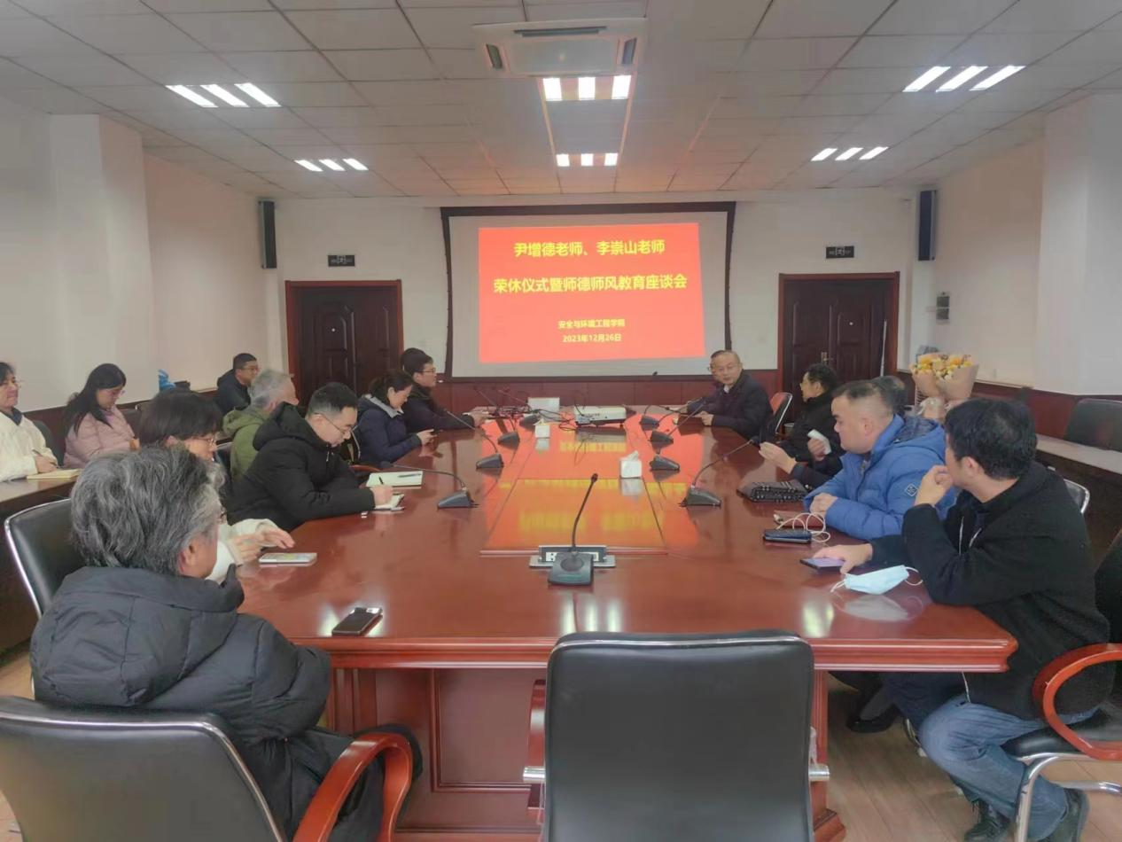 2024-01-0312月26日,安全学院举办尹增德教授和李崇山教授荣休仪式暨师德师风教育座谈会。安全学院领导班子、教师代表及学生代表参加座谈会。会议由学院党委书记张恩生主持。安全学院院长程卫民代表学院全体师生向尹增德教授、李崇山教授表达崇高的敬意,对两位老师为学院发展、学科建设的辛勤付出表示衷心感谢,并向他们致以最真挚的祝福。他指出,安全学院的长足发展离不开两位老师的奋斗和努力,青年教师们要以两位老师为榜样,让薪火...