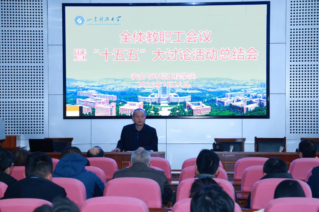 2026-02-021月29日,安全学院于J4-319报告厅召开全体教职工会议暨“十五五”大讨论活动总结会。总结“十四五”时期学院工作成效,确立“十五五”时期发展重点任务。会议由学院党委书记张恩生主持,院长程卫民作总结讲话,院领导班子成员及全体教职工参会。学院党委副书记兼副院长王建友,副院长刘音、周刚、刘震分别围绕学生教育成长、本科生教学、科研成果产出、学科建设发展、师资队伍引育、研究生培养进行“十四五”时期总结,并针对分...
