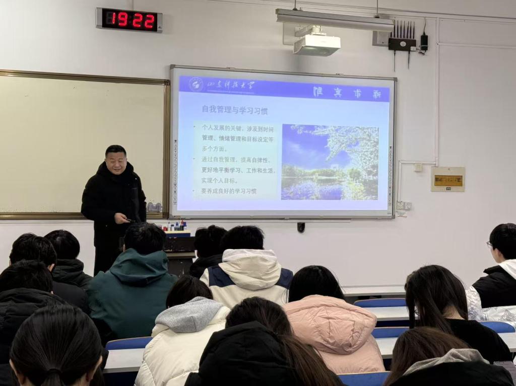 2025-12-3012月18日,环境工程2024-1班开展“凝心聚力促成长,笃行实干铸新篇”主题班会,班主任周广柱主持,全班同学共同参与。班会紧扣“自我成长与班级建设”主题,围绕自我成长、班风建设、考试规范三大核心内容展开深入交流。周广柱指出,自我管理是大学生从被动转向主动发展的关键,需重点掌握时间管理、情绪调节与目标设定三大能力:按任务轻重缓急分配课堂学习、自主复习与活动时间,通过运动、倾诉及时疏导压力,须遵循“可量化...