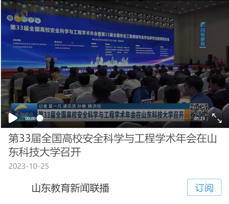 第33届全国高校安全科学与工程学术年会在山东科技大学召开