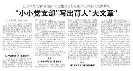 山东科技大学“新带领”研究生党支部党建、科创与育人同频共振 “小小党支部”写出育人“大文章”
