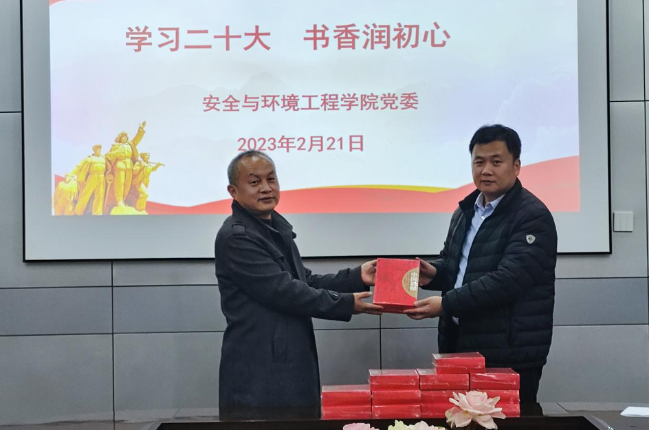 2023-02-22为持续深入学习宣传贯彻党的二十大精神,拓展学习渠道,丰富学习内容,激励和引导全体党员系统学、全面学、深入学,用浓郁书香凝聚精神力量。2月21日,安全与环境工程学院党委于j4-321、319会议室集中为党员发放学习书籍,为党员补足“精神之钙”。活动现场,安全学院党委书记张恩生为党员代表发放书籍,并鼓励大家要主动利用零散时间,深研细读发放的书籍,深学透悟党的二十大精神实质及丰富内涵,在学院内形成积极学习贯彻党...